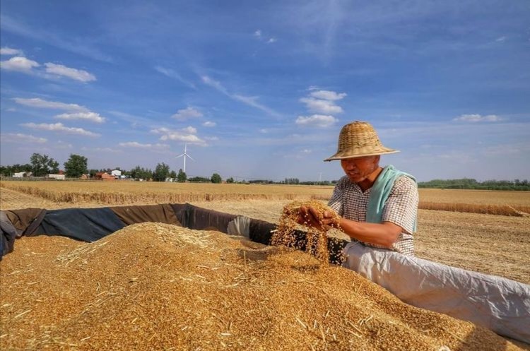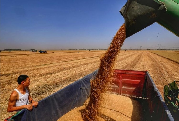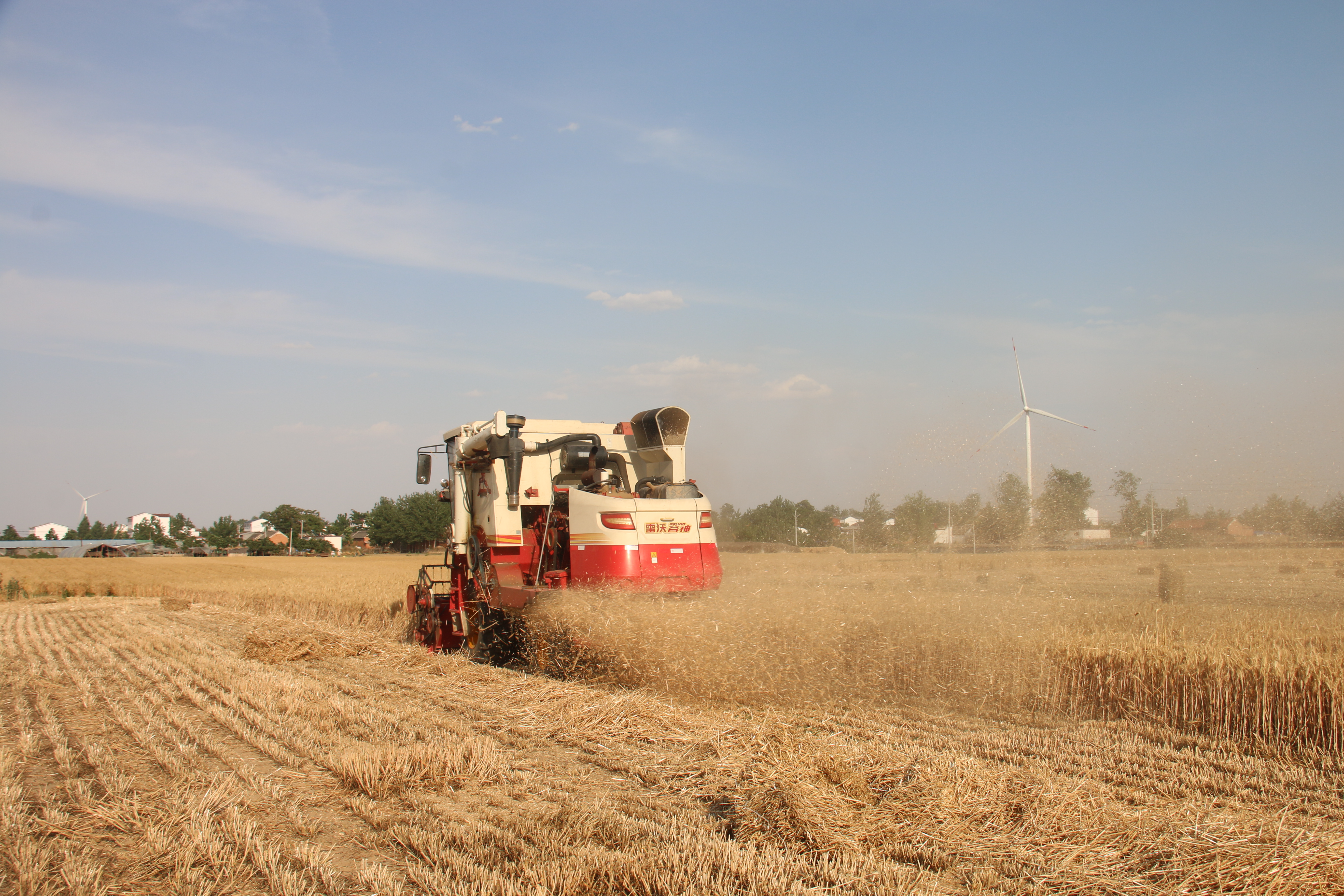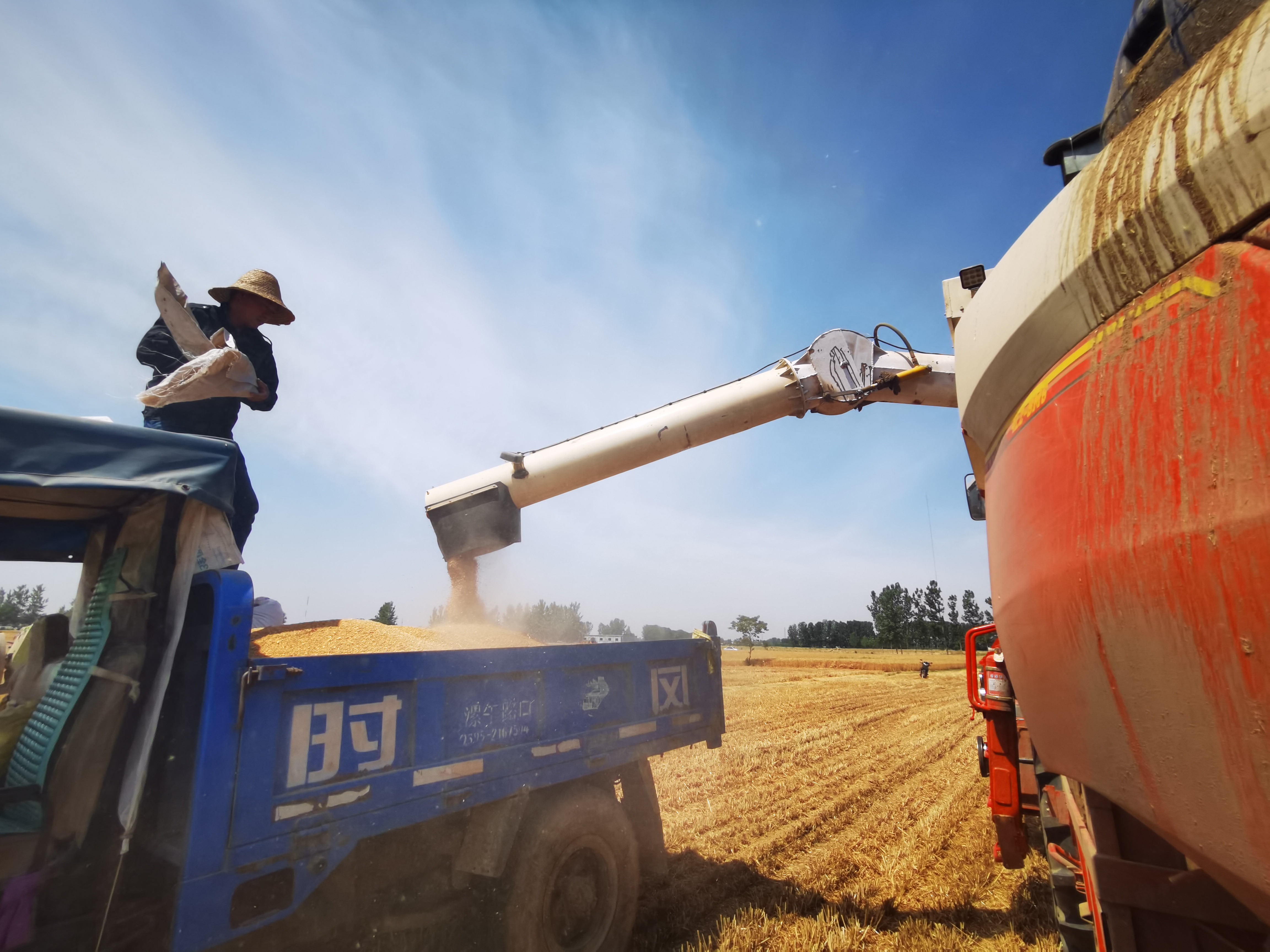 驕陽似火,麥香四溢。6月的西華鄉(xiāng)村大地到處一片繁忙景象。一臺臺收割機(jī)在金黃色的麥浪中轟鳴著馳騁,隨著小麥?zhǔn)崭顧C(jī)駛過,一顆顆金燦燦的麥穗被“吃”進(jìn)收割機(jī),然后,一粒粒飽滿的麥子從出倉口“吐”進(jìn)農(nóng)用車車斗里,農(nóng)民的臉上洋溢著豐收的喜悅。