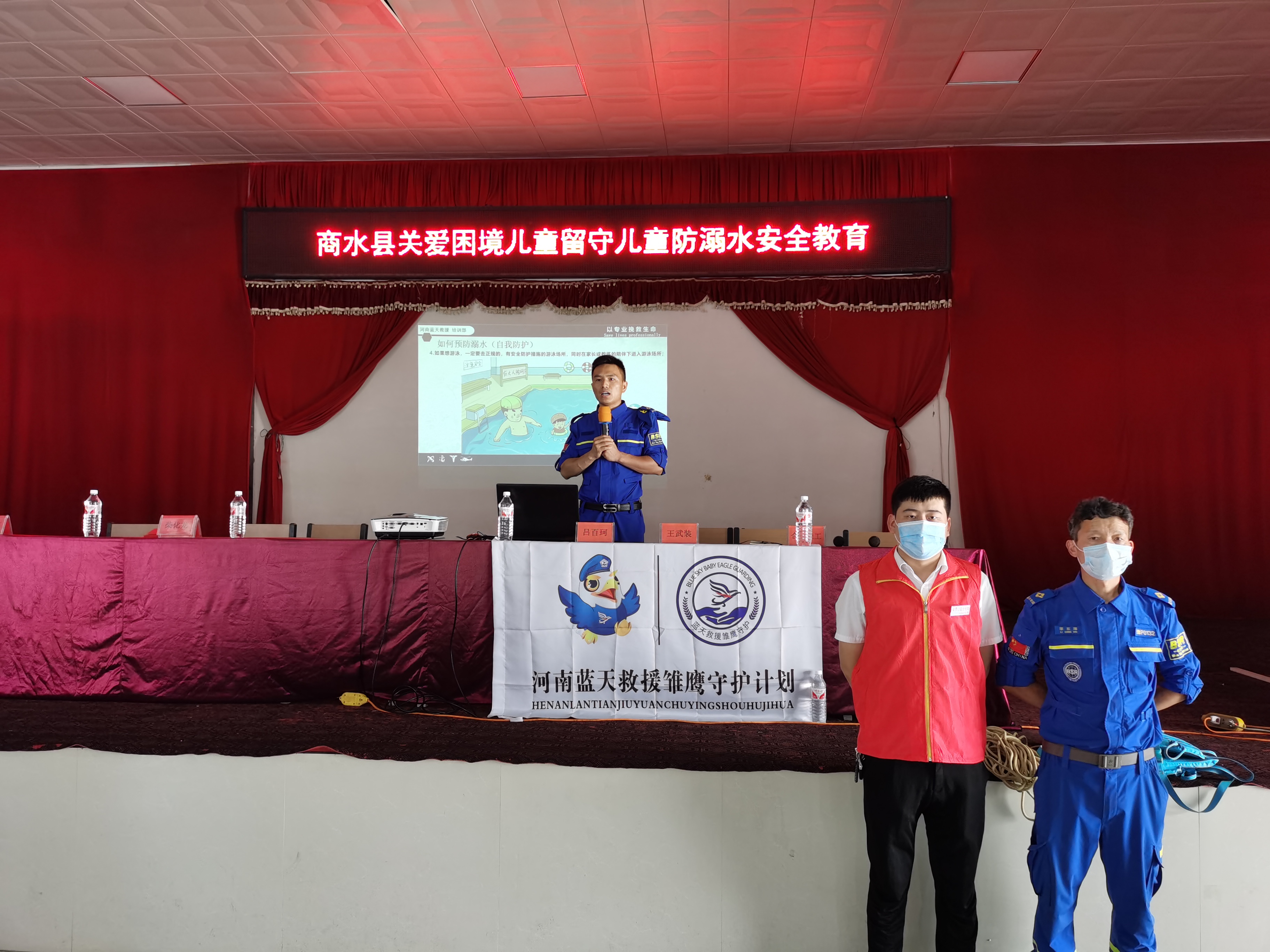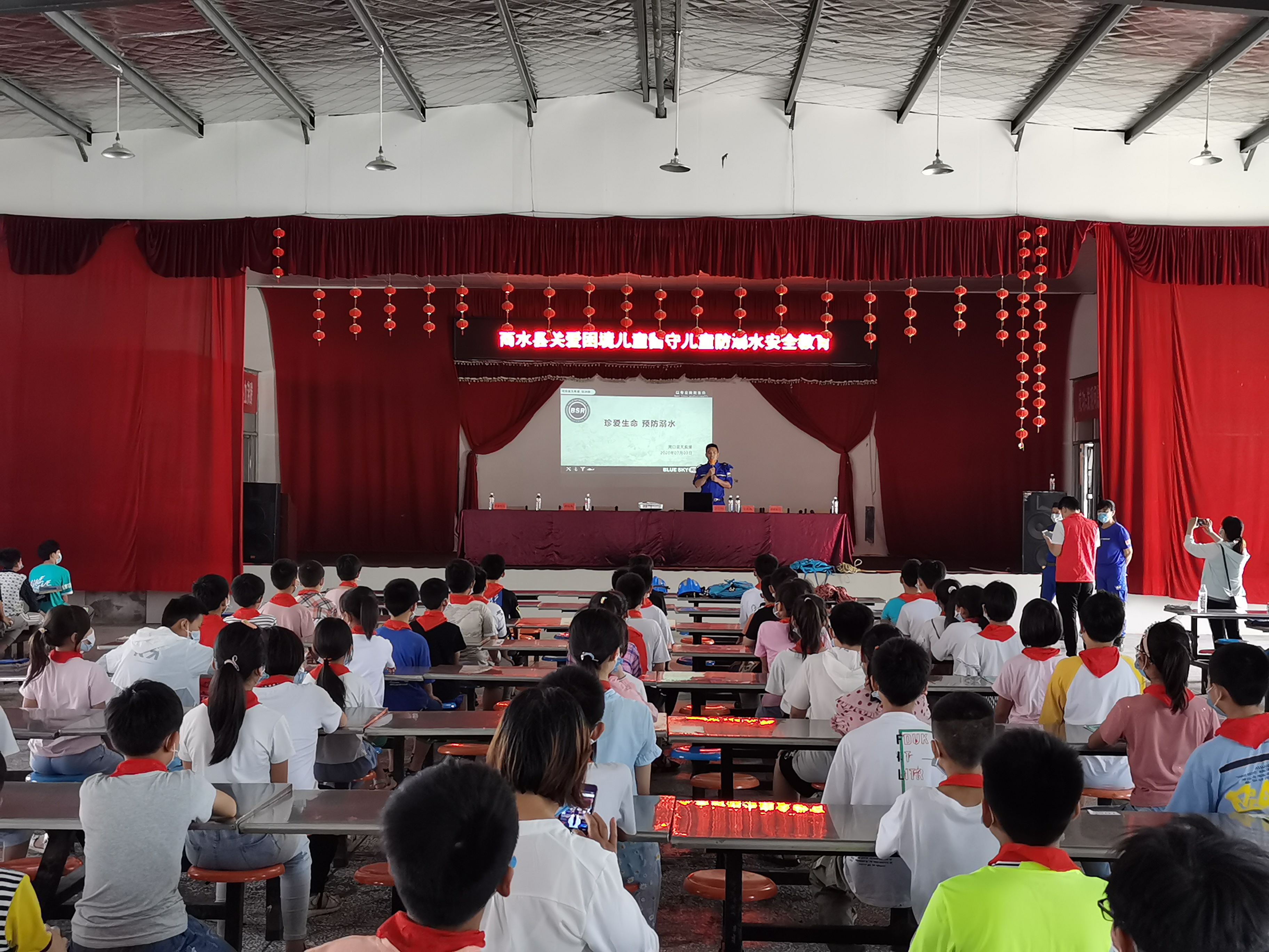 活動現(xiàn)場,專業(yè)的社工和商水縣藍天救援隊為學(xué)生開展了45分鐘的防溺水課,救援隊員結(jié)合視頻講解和現(xiàn)場實操演練向?qū)W生宣傳防溺水知識,并向?qū)W生派發(fā)了防溺水知識宣傳單。在問答環(huán)節(jié)中,學(xué)生們積極回答各種防溺水知識問題。最后,在社工的帶領(lǐng)下,學(xué)生們齊聲朗讀防溺水安全“六不準(zhǔn)”。 五二班學(xué)生賈家豪提到這次宣講活動說,“通過這次學(xué)習(xí)我認識到在河邊戲水是很危險的事情,以后我再也不去河溝邊玩了。”