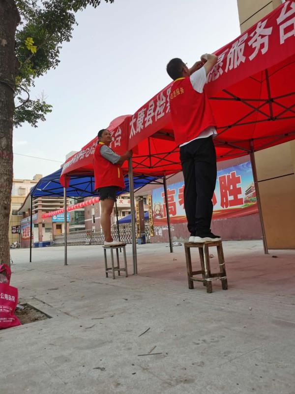 6日下午3時(shí)許,鄭雪艷和王作宇二人被安排到太康縣華夏外國語高考考點(diǎn)負(fù)責(zé)為考生和家長搭建11個(gè)茶水棚?!跋挛?點(diǎn)正是一天中最熱的時(shí)候,考點(diǎn)附近也沒有樹蔭?!碧悼h網(wǎng)信辦副主任高一麟回憶說,要在天黑之前搭建好11個(gè)茶水棚,對(duì)于鄭雪艷和王作宇兩人來說并非易事。