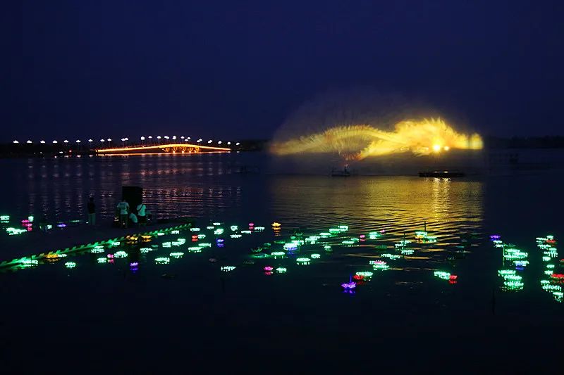 隨后,各位領(lǐng)導(dǎo)和嘉賓及數(shù)以千計(jì)的群眾觀看了精彩的文藝演出和流光溢彩、聲光兼具的全息水幕燈光秀。