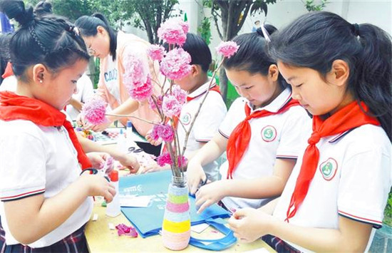 放暑假了,許多中小學生根據(jù)自己的愛好,報名參加了足球、美術(shù)、舞蹈等興趣班。這些興趣班使孩子們的假期生活變得豐富多彩,也讓他們更充實、更自信、更快樂。圖為商水縣新城學校的小學生假期里學習手工制作。