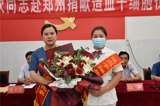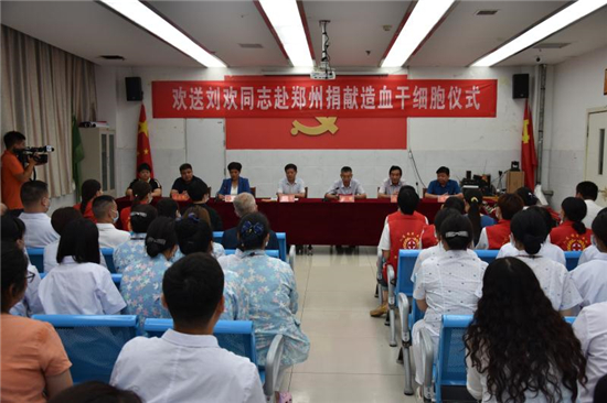 “作為一名醫(yī)務(wù)人員,能為患者帶來生的希望,無論如何我都不會(huì)拒絕。希望捐獻(xiàn)后那位患者能早日康復(fù),投入新生活……” 7月22日上午,在西華縣中醫(yī)院會(huì)議室舉行的劉歡同志赴鄭州捐獻(xiàn)造血干細(xì)胞歡送儀式上,這位來自該院骨科護(hù)士長(zhǎng)的一番話贏得現(xiàn)場(chǎng)陣陣掌聲。市紅十字會(huì)常務(wù)副會(huì)長(zhǎng)毛立營(yíng),市紅十字會(huì)秘書長(zhǎng)高春,西華縣委副書記郭峰,西華縣人民政府副縣長(zhǎng)、紅十字會(huì)會(huì)長(zhǎng)張翠霞,西華縣衛(wèi)健委副主任胡濤,西華縣中醫(yī)院院長(zhǎng)高彥博等出席歡送儀式。
