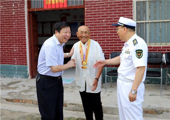 在90歲五級因戰(zhàn)殘疾軍人劉德山家,大伙認(rèn)真聽劉德山講述部隊(duì)的故事;汲冢鎮(zhèn)黃竹園行政村劉老家村88歲劉應(yīng)平參加過抗美援朝,如今年邁的老劉嚴(yán)重耳聾、語言交流障礙,還得靠親屬“翻譯”才能搭上一兩句話,當(dāng)聽到問他生活好不好時,老劉興奮地豎起拇指說:“好好好”;今年94歲的抗戰(zhàn)老兵丁相廷身體十分硬朗、精神矍鑠,不拄拐、眼不花、耳微聾,得知縣領(lǐng)導(dǎo)要來慰問,老丁早早地把自己的軍功章準(zhǔn)備好了,一個個掛在胸前,見面一個軍禮彰顯剛強(qiáng)作風(fēng)。從1945年入伍至1950年復(fù)員,老丁記得清楚、講得明白,大伙聽得有味、不停點(diǎn)贊;巴集鄉(xiāng)段寨村92歲抗美援朝老戰(zhàn)士段相士有個堅(jiān)持幾十年的好習(xí)慣,他每天早上都在村里走一圈,感受美麗鄉(xiāng)村變化,再用溫水抹抹澡,保持健康體魄。