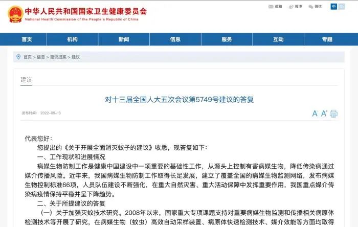 • 近日,一則全國人大代表提出全面消滅蚊子的建議得到了國家衛(wèi)健委的答復。很快,各種爭議也隨之而來。有人認為,蚊子是自然界和生態(tài)系統(tǒng)的一員,存在有其合理性;也有人認為,蚊子是害蟲,是疾病傳播的元兇之一,應該“除之而后快”。