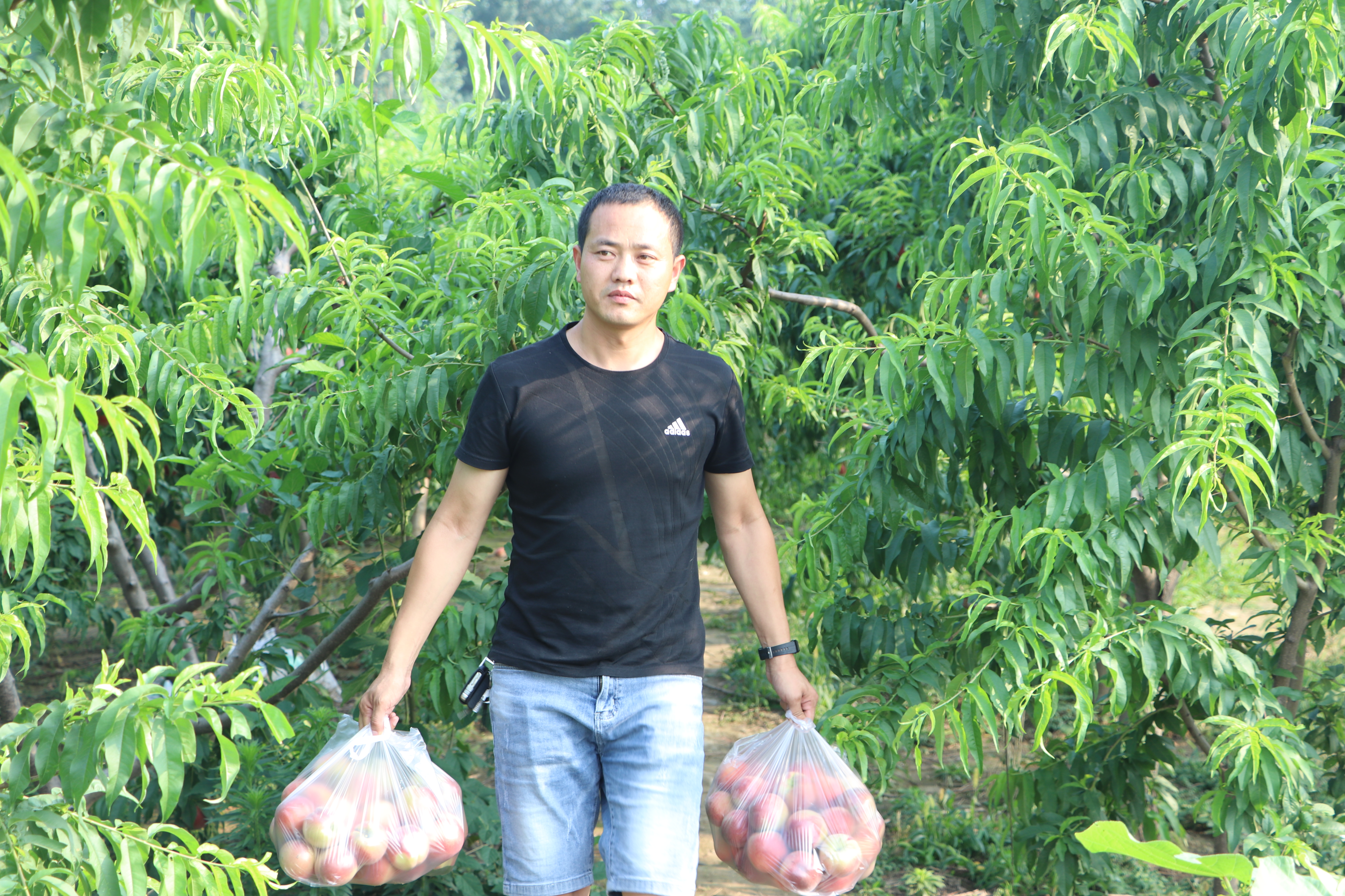 孫朝杰小果園的蜜桃,汁多味甜,外觀粉里透紅,咬開(kāi)白如晶玉,口感爽滑,桃香濃郁,深受游客的喜愛(ài)?!熬葡悴慌孪镒由睢保仁侵苓叺娜四矫皝?lái)購(gòu)買,接著越來(lái)越多的游客特地到這購(gòu)買。