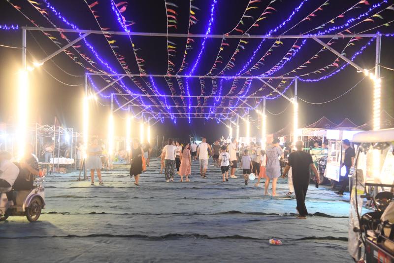 該夜市場(chǎng)地由商水縣水韻章華文商旅項(xiàng)目提供,占地近百畝,設(shè)有100多個(gè)攤位,經(jīng)營(yíng)范圍包括吃喝玩樂娛、服裝百貨等,每天晚上6點(diǎn)多營(yíng)業(yè),11點(diǎn)收攤,周末客流高峰時(shí)游客有3000多人,其中不少來(lái)自周口中心城區(qū)。