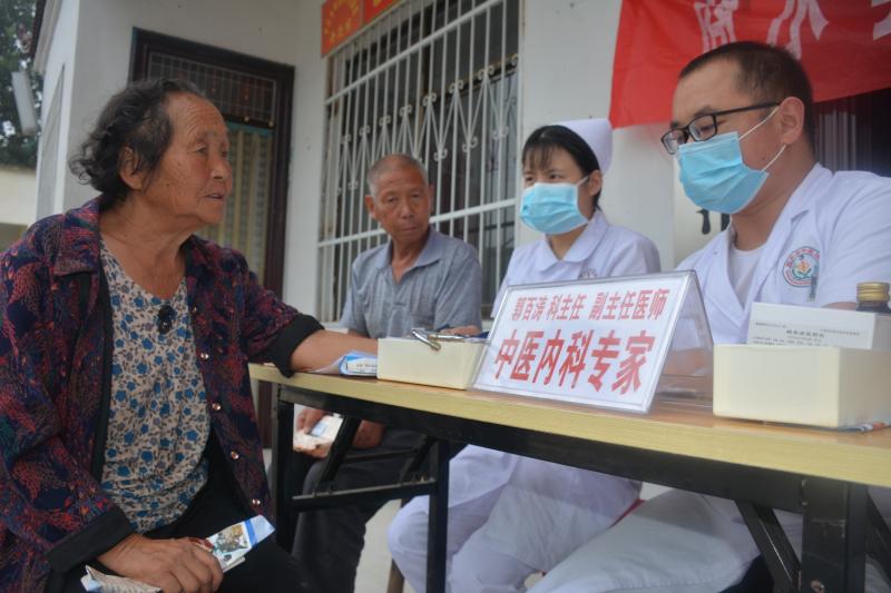 9時許,偌大的村委大院人來人往、熱鬧非凡。一些群眾騎著兩輪車、三輪車、自行車,有的坐著輪椅、拄著拐杖陸陸續(xù)續(xù)從四面八方趕了過來。中醫(yī)師們擺開自己的“攤位”迫不及待地為村民進行把脈、針灸、開方、拿藥、測血壓等各種診療服務……
