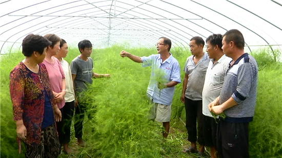 當天,一場技術(shù)講座正在如期舉行,當?shù)赜忻奶J筍種植“土專家”程殿明說:“咱這蘆筍種植,要以噴灑生物藥為主,在有機種植上,千萬不能用有機磷類的。大棚要想多掙錢,眼下管理是關(guān)鍵,長勢好了,進入冬季,一個棚采摘就能掙三到五千塊錢。”