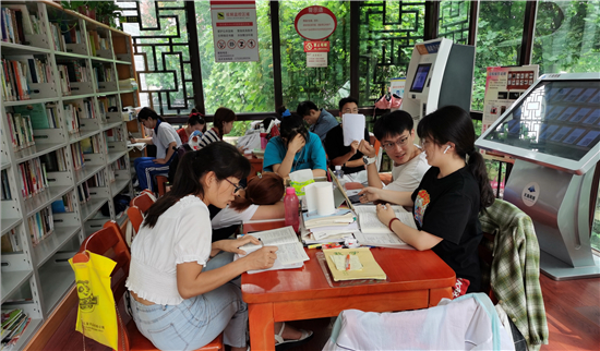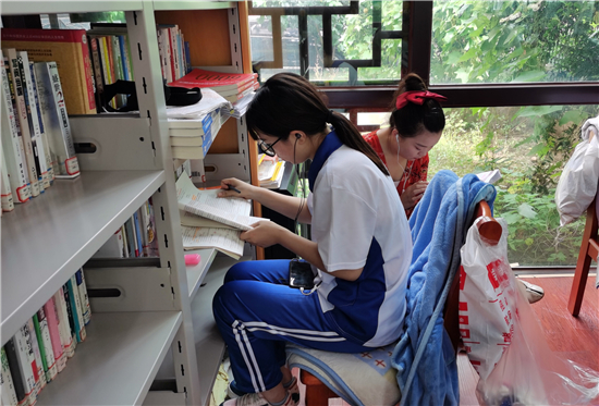 自進入暑假以來,市圖書館接待人數(shù)居高不下,其中學(xué)生居多。不少學(xué)生來此學(xué)習(xí)、寫暑假作業(yè),他們感到圖書館環(huán)境靜謐,有學(xué)習(xí)氛圍。在市區(qū)的各個智慧圖書館內(nèi)有時還會出現(xiàn)了“一座難求”的現(xiàn)象。但大家都自覺遵守圖書館的紀律,沒有一絲噪音。