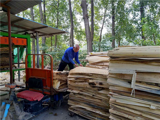 8月28日,商水縣練集鎮(zhèn)馬莊村的四紅木業(yè)有限公司板材加工車間內(nèi),機(jī)器轟鳴,工人忙著斷木、打圓、卷板,一張張板材被切割后,拉到曬板場(chǎng)晾曬。“有了這份收入,去年全家脫貧摘帽?!闭谲囬g里搬運(yùn)板材的馬莊村貧困戶王天林對(duì)記者說(shuō)。