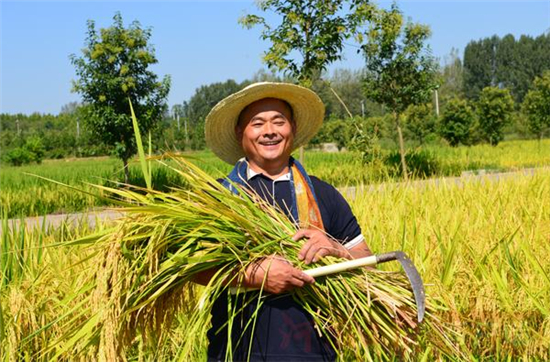 光山縣文殊鄉(xiāng)東岳村,四方景家庭農(nóng)場黨支部書記楊長太家的稻子喜獲豐收,并給我們訴說著村里這一年的新變化。劉宏冰 攝
