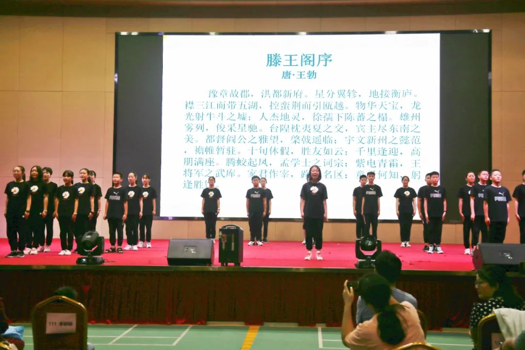 接著,國(guó)際班學(xué)生帶來(lái)了有趣的接龍方式——國(guó)學(xué)誦讀表演。他們熟記熟背,朗朗上口。幾十人的團(tuán)隊(duì),或領(lǐng)頌,或齊頌,或輪頌,高低起伏,抑揚(yáng)頓挫,鏗鏘有力。顯示了識(shí)記技巧和老師教學(xué)古典誦讀的良苦用心,展示了新星學(xué)校扎實(shí)