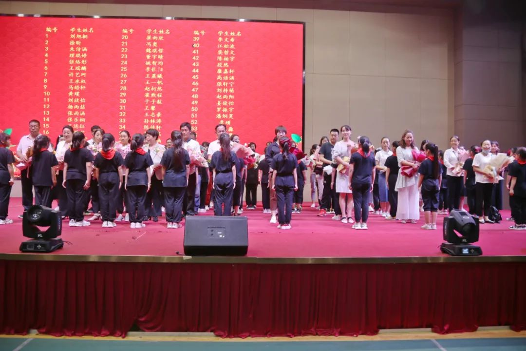 鮮花,掌聲,笑臉,燈光,音樂(lè),畫(huà)面。三隊(duì)少先隊(duì)員們手捧鮮花,先后五次走上舞臺(tái),把250束鮮花獻(xiàn)給了250名家長(zhǎng)老師,并齊聲向老師們祝愿:老師,節(jié)日快樂(lè)!