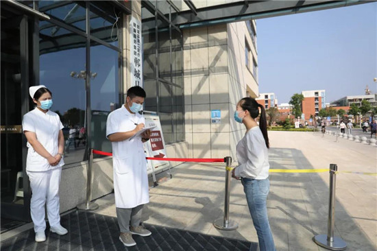 “您好,您哪兒不舒服?。拷谌ミ^疫區(qū)嗎?”鄲城縣第二醫(yī)療健康服務(wù)集團(tuán)鄲城縣中醫(yī)院門診樓前預(yù)檢分診入口處,分診護(hù)士正仔細(xì)詢問一名就診患者。“我有點(diǎn)發(fā)燒、咳嗽,10天前從某省回來?!狈衷\護(hù)士經(jīng)詳細(xì)詢問其流行病學(xué)史,在做好登記后,護(hù)士為患者更換醫(yī)用外科口罩,并引導(dǎo)患者到發(fā)熱門診......這是9月8日下午,在鄲城縣第二醫(yī)療健康服務(wù)集團(tuán)鄲城縣中醫(yī)院開展的秋冬季新冠肺炎疫情防控應(yīng)急演練的一幕。