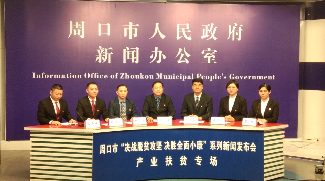 10月19日上午,周口市委宣傳部、市政府新聞辦、市扶貧辦舉行周口市“決戰(zhàn)脫貧攻堅、 決勝全面小康”產(chǎn)業(yè)扶貧專題新聞發(fā)布會。