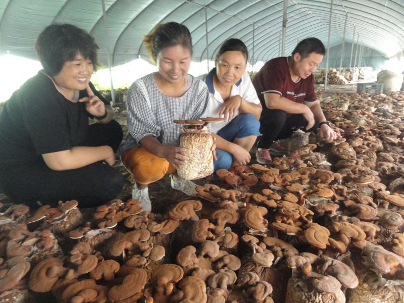 9月15日,商水縣黃寨鎮(zhèn)楊營村“蘑菇王”楊秀麗(左二)在蘑菇扶貧產(chǎn)業(yè)園里向食用菌種植戶傳授靈芝管理技術(shù)。近年來,黃寨鎮(zhèn)通過政策扶持、項(xiàng)目促動、培訓(xùn)指導(dǎo)等舉措,采用“合作社+基地+貧困戶”等模式,集種植、加工、銷售為一體,加快推進(jìn)食用菌全產(chǎn)業(yè)鏈開發(fā),帶動了周邊300多人種植食用菌脫貧致富。喬連軍 攝