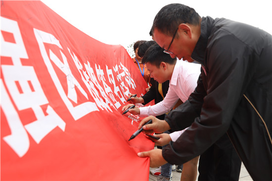 儀式上,周口市文明誠信企業(yè)、周口市港潤精密工業(yè)有限公司負(fù)責(zé)人翟振以“守初心、擔(dān)使命,推動高質(zhì)量發(fā)展”為題,向全區(qū)廣大企業(yè)、商戶發(fā)出開展質(zhì)量月活動、實(shí)施質(zhì)量強(qiáng)區(qū)倡議。