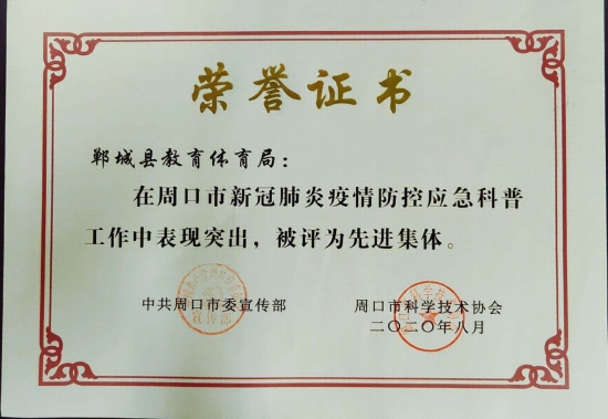 鄲城縣教體局獲全市疫情防控應(yīng)急科普兩項(xiàng)表彰