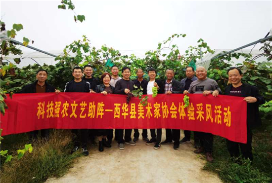 活動(dòng)期間,高磊帶領(lǐng)創(chuàng)作骨干先后參觀了西華農(nóng)科所新品種新技術(shù)生產(chǎn)示范基地,優(yōu)質(zhì)葡萄園、優(yōu)質(zhì)桃園、優(yōu)質(zhì)梨園、優(yōu)質(zhì)棗園建設(shè)基地,西華縣農(nóng)科所“空中結(jié)薯”試驗(yàn)景觀現(xiàn)場(chǎng)等,詳細(xì)了解西華農(nóng)業(yè)科研及新品種新技術(shù)推廣情況。與會(huì)的各位美術(shù)創(chuàng)作骨干成員對(duì)西華縣農(nóng)科所積極開(kāi)展農(nóng)業(yè)科學(xué)研究,實(shí)施科技強(qiáng)農(nóng)戰(zhàn)略,依托“院縣共建”“四優(yōu)四化”大力推廣新品種新技術(shù)助力鄉(xiāng)村振興等方面取得的成績(jī)給予高度評(píng)價(jià)。