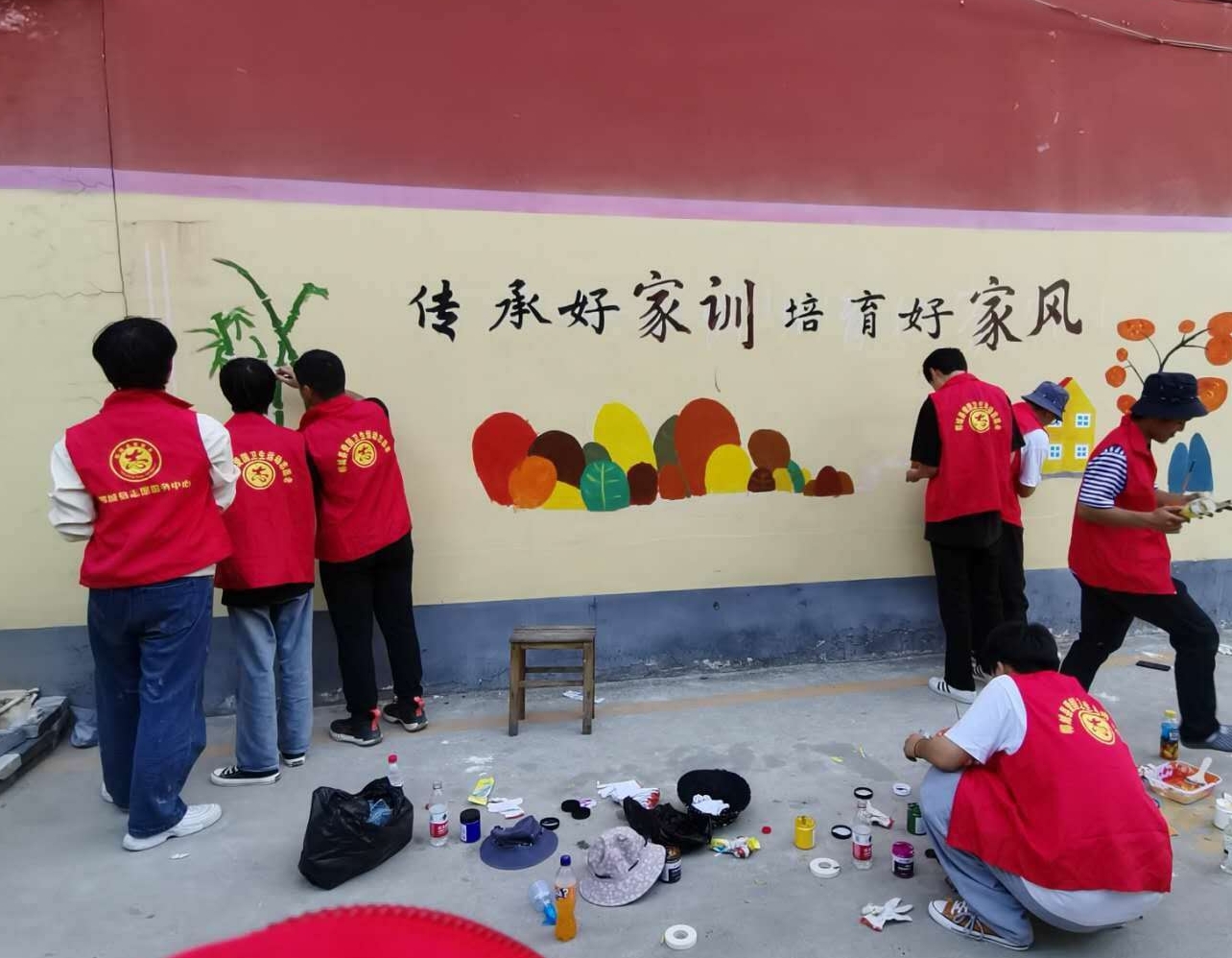 “我們在創(chuàng)文排查中發(fā)現(xiàn),一些老舊房屋的墻面影響美觀,于是我們決定利用起來,將文明禮儀、傳統(tǒng)文化、家風(fēng)家訓(xùn)等內(nèi)容以圖文的形式繪到墻面,不僅美化了公共環(huán)境,更是給社會傳播了正能量?!睕衬辖值老那f社區(qū)黨支部書記夏立事說。