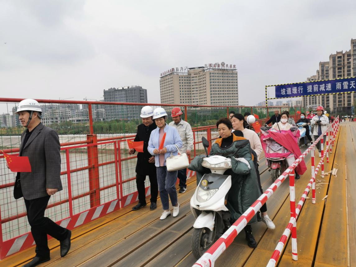 這位女士口中的便民橋位于潁濱公園內(nèi),由中交二航局沙潁河航道升級改造工程PPP項目部承建。 據(jù)悉,基于沙潁河升級改造,位于縣醫(yī)院東側的一座橋需要拆除。為方面行人通行,中交二航局沙潁河航道升級改造工程PPP項目部,歷經(jīng)兩個多月時間搭建完成。中交二航局沙潁河航道升級改造工程PPP項目部副部長王子龍告訴記者,受老橋下游側跨河高壓電纜影響,項目部在上游側約120米處布置一座跨河鋼便橋,便橋長266米,寬6.0米。為提高安全指數(shù),橋兩側的護欄高度由原計劃的1.30米,提升到1.80米。