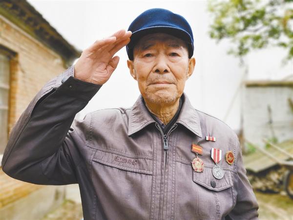 聽(tīng)說(shuō)記者要為他照相,老人立即要求家人為他換身干凈的衣服,很認(rèn)真地把軍功章、獎(jiǎng)?wù)乱灰淮髟谏砩希p腿合攏,努力地挺直上身,對(duì)著鏡頭打了一個(gè)標(biāo)準(zhǔn)的敬禮?! ?/p>
