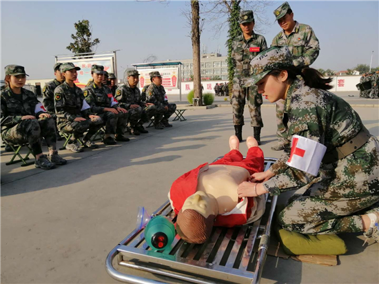“稍息,立正,齊步走!”10月下旬,在淮陽(yáng)區(qū)基干民兵軍事訓(xùn)練場(chǎng)上,活躍著一支醫(yī)療救護(hù)專(zhuān)業(yè)分隊(duì),這支由20名醫(yī)院護(hù)士組成的基干民兵隊(duì)伍,她們英姿颯爽,意氣風(fēng)發(fā)。在隊(duì)列、射擊、投彈、包扎、盾牌操等多個(gè)軍事科目中,樣樣名列前茅,她們用拿著注射器針管的手,扛起了鋼槍?zhuān)e起了盾牌,樹(shù)立起了女基干民兵軍事訓(xùn)練的好樣子。