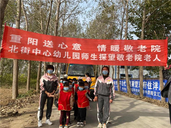 東夏亭鎮(zhèn)北街中心幼兒園園長袁百成說:“重陽節(jié)也是老人節(jié)。帶領(lǐng)小朋友們到敬老院開展慰問老人活動,就是要從小培養(yǎng)他們尊老、愛老、敬老的情懷,發(fā)揚(yáng)尊老、愛老、敬老的優(yōu)良傳統(tǒng)。也讓敬老院的孤寡老人真正感受到來自大家庭的溫暖?!?/p>