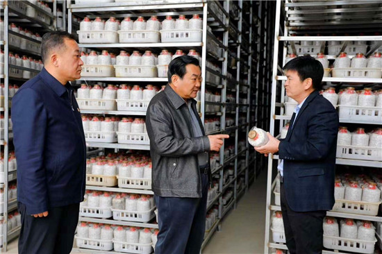 在羅古洞行政村預(yù)脫貧戶許廣東家中,王國(guó)璽聽(tīng)取了該戶的幫扶情況匯報(bào),詳細(xì)詢問(wèn)許廣東政策落實(shí)情況,對(duì)該戶采取的針對(duì)性幫扶措給予了肯定。在華瑞農(nóng)牧食用菌基地,王國(guó)璽參觀了該基地產(chǎn)品展示廳、直播間,了解企業(yè)生產(chǎn)、擴(kuò)建情況,夸贊該企業(yè)為全縣特色食用菌種植帶好了頭,起到了很好的示范帶動(dòng)作用,鼓勵(lì)該企業(yè)要利用好網(wǎng)絡(luò)直播平臺(tái),拓寬產(chǎn)品銷路,增加企業(yè)效益,帶動(dòng)更多群眾受益。在君趙食用菌基地,王國(guó)璽實(shí)地了解該企業(yè)菌種制作、生產(chǎn)流程,并對(duì)菌包生產(chǎn)、加工過(guò)程提出了改進(jìn)建議。