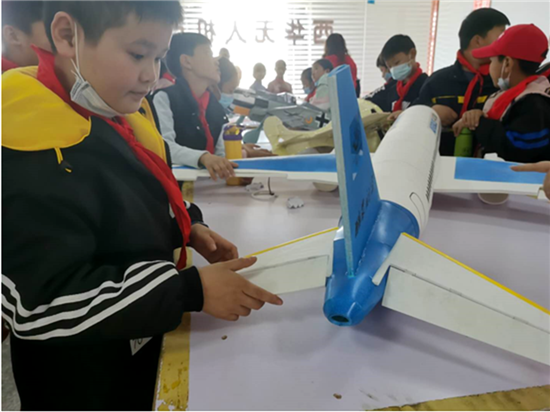 除了觀看有趣的表演外,更多的同學(xué)好奇地想一探無人機(jī)飛行的秘密。在安明慧帶領(lǐng)下,一群興奮又好奇的同學(xué)參觀了無人機(jī)5S展廳,聽取了多種植保無人機(jī)的用途及作業(yè)效率介紹;在無人機(jī)產(chǎn)業(yè)園大數(shù)據(jù)中心,觀看了無人機(jī)應(yīng)用視頻及大數(shù)據(jù)視頻;在無人機(jī)產(chǎn)業(yè)園科普室,觀摩了擺放的各種模型機(jī),有的同學(xué)還在黨員飛手的指導(dǎo)下,組裝了飛機(jī)模型,提高大家的動(dòng)手能力和對航空航天的熱愛和興趣,讓同學(xué)們度過了一個(gè)愉快的周末。