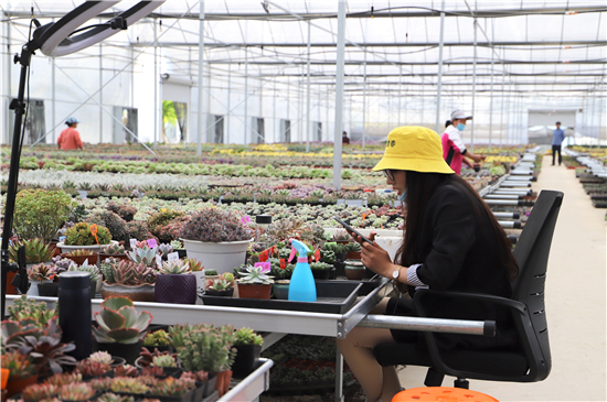 “雙11”剛過,河南“多肉之王”、省電商扶貧帶頭人張國健正帶領(lǐng)著團(tuán)隊(duì)在鄲城縣農(nóng)高區(qū)多肉基地為2300多單精準(zhǔn)發(fā)貨。今年38歲的張國健開過挖掘機(jī)、當(dāng)過銷售員,2014年在南方涉足電商時(shí)摔了大跟頭,賠了70多萬元。回到老家白馬鎮(zhèn)辦了多肉種植基地之后,鄲城縣商務(wù)局等部門與其對(duì)接培訓(xùn)了網(wǎng)紅、推薦了人才、在農(nóng)高區(qū)設(shè)立2650平方米的大棚,張國健邁上了快車道,年銷售額在3000萬元以上。今年又增加9個(gè)大棚,包括錢店鎮(zhèn)、石槽鎮(zhèn)兩個(gè)供貨代養(yǎng)的扶貧大棚,幫扶30多戶貧困戶脫貧,帶動(dòng)電商從業(yè)人員160余人。