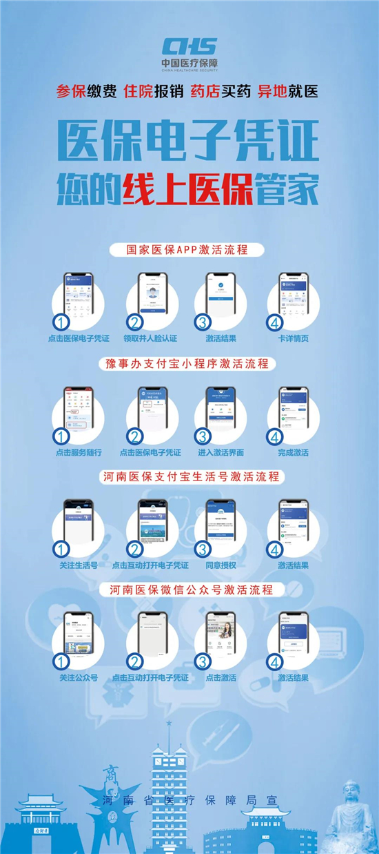 醫(yī)保電子憑證不依托實(shí)體卡,領(lǐng)取方式簡(jiǎn)單,參保人員可以直接通過國(guó)家醫(yī)保App或者通過微信、支付寶,以及經(jīng)由國(guó)家醫(yī)保局和河南省醫(yī)療保障局認(rèn)證授權(quán)的第三方渠道,自助進(jìn)行認(rèn)證后激活使用,不需要到服務(wù)大廳領(lǐng)取和激活。