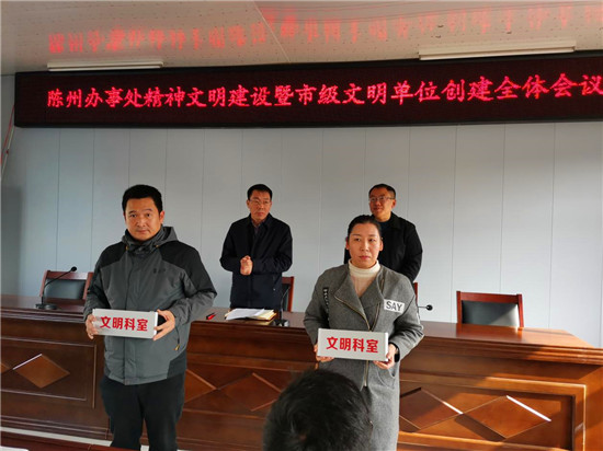 疫情防控辦公室、黨政辦公室獲得“文明科室”稱號;王志國、史路路獲得“文明職工”稱號;鄒亮家庭、武志強家庭等6個家庭獲得“文明家庭”稱號。大會為獲獎集體和個人頒發(fā)了獎牌、榮譽證書和獎品。取得榮譽的先進集體和個人,集中展示了陳州辦事處的文明形象和干部職工的職業(yè)道德、家庭美德和個人品德,為文明單位創(chuàng)建增添光彩。