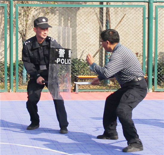 在法警大隊訓練場,考核組一行觀看了擒敵拳和警械具使用、處置突發(fā)事件等實戰(zhàn)應用。在處突演練過程中,5人組成的處突小組模擬各種突發(fā)情況進行實戰(zhàn)演練,法警們反應迅速,執(zhí)法規(guī)范,短短數秒內就將"暴徒"制服。
