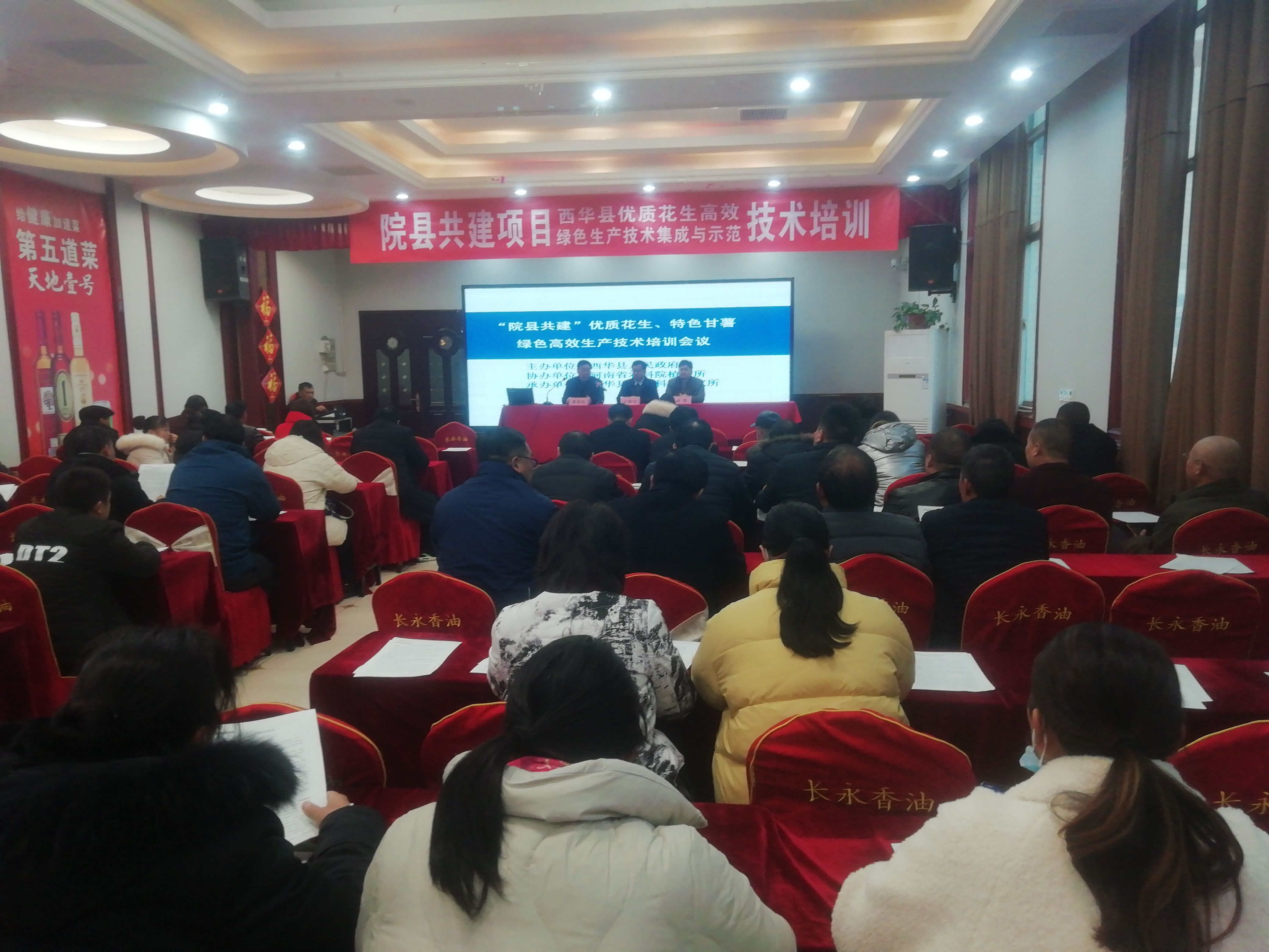 12月7日上午,院縣共建項(xiàng)目西華縣優(yōu)質(zhì)花生高效綠色集成與示范技術(shù)培訓(xùn)會(huì)及現(xiàn)代農(nóng)業(yè)科技綜合示范縣項(xiàng)目西華縣甘薯安全貯藏和葉用甘薯生產(chǎn)技術(shù)培訓(xùn)在西華縣溫哥華一樓會(huì)議室舉辦。來自全縣各鄉(xiāng)(鎮(zhèn))、辦事處分管農(nóng)業(yè)副職,農(nóng)業(yè)經(jīng)營主體代表及種植大戶100多人參加會(huì)議。