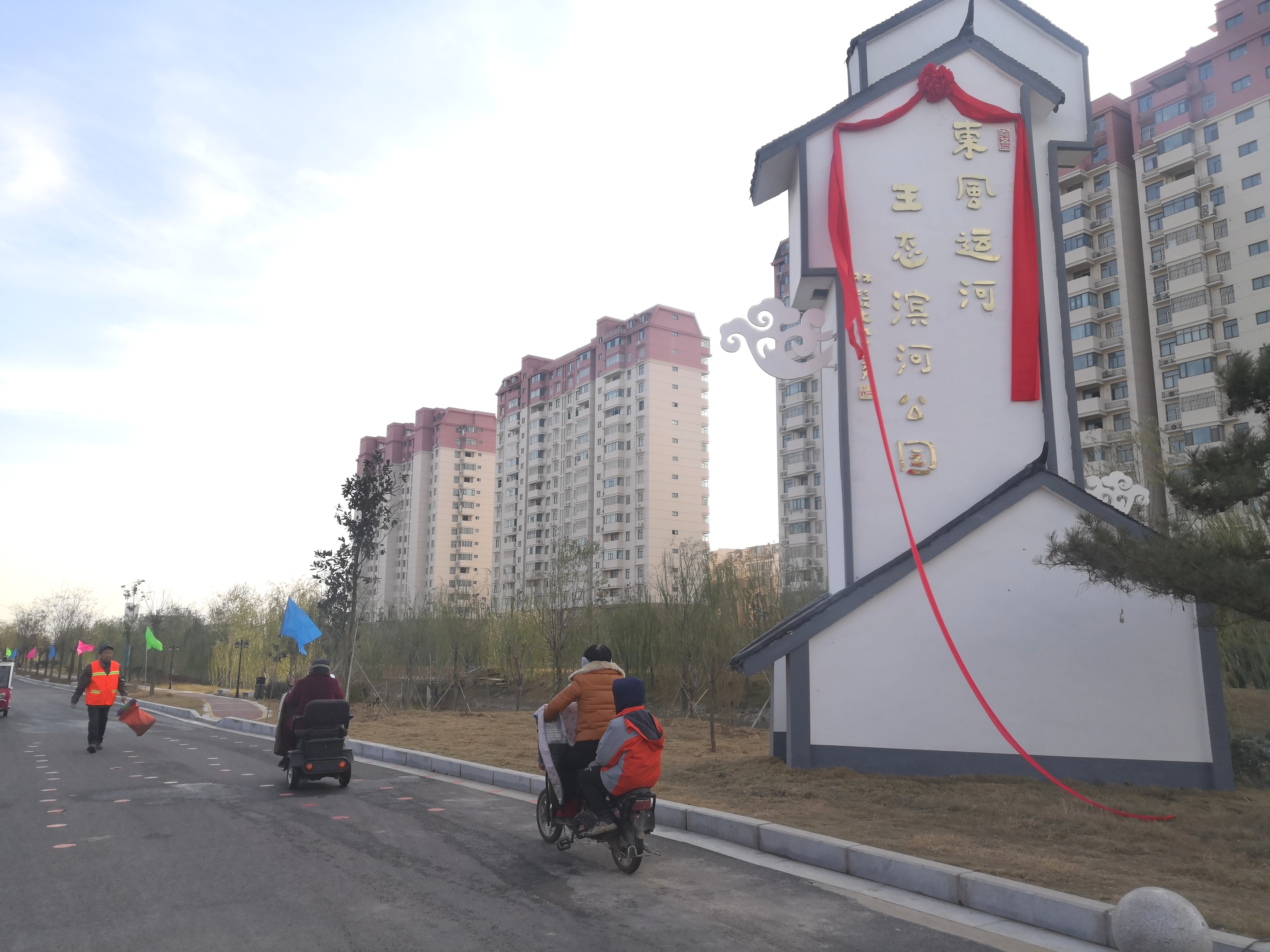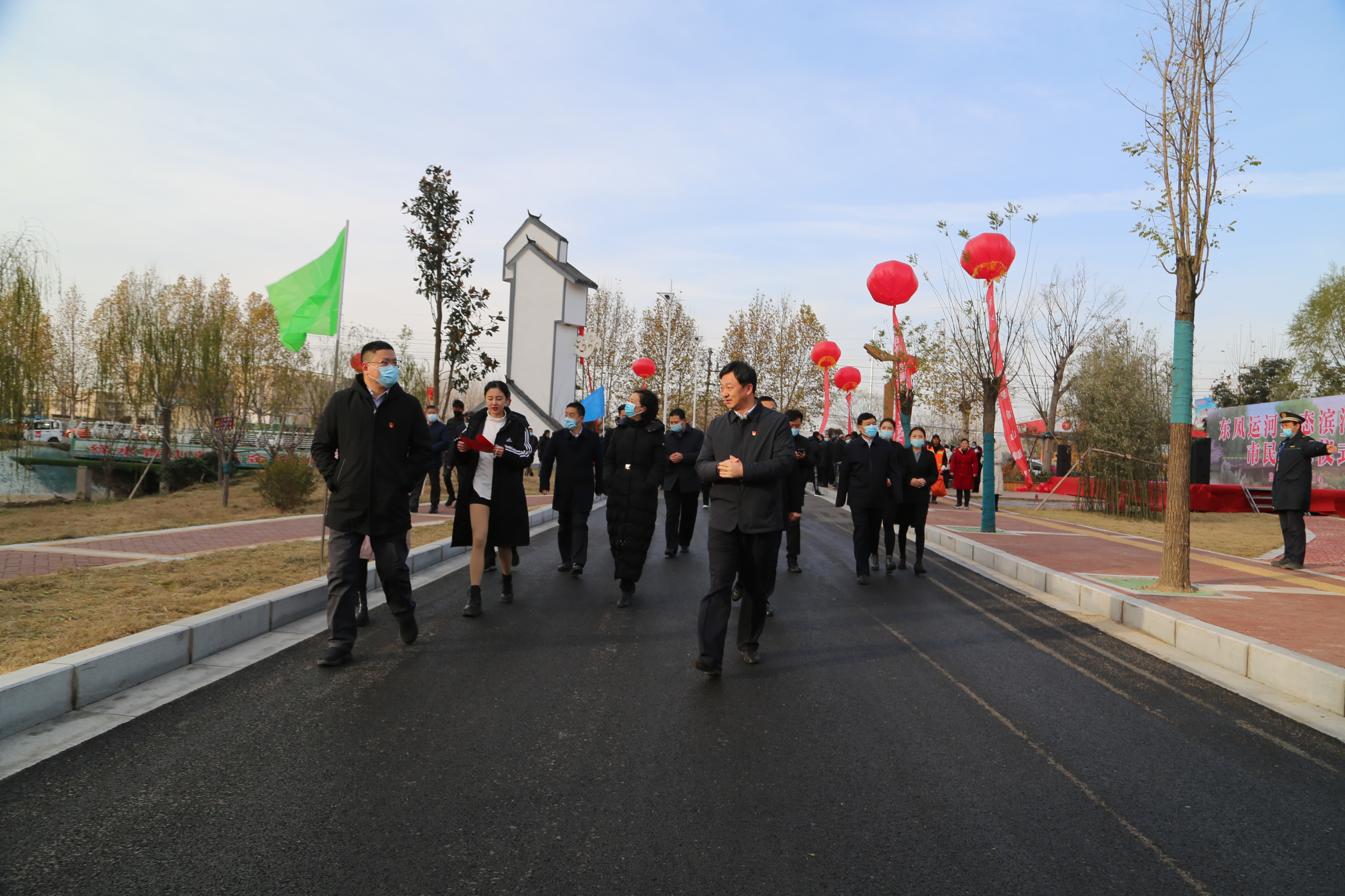 東風(fēng)運(yùn)河生態(tài)濱河公園為周邊居民提供一個(gè)集體育運(yùn)動(dòng)、休閑娛樂(lè)為一體的綜合性濱河公園,極大的提升周邊居民生活幸福感。運(yùn)河的兩岸居民為家門口新增一公園而感到興奮,他們紛紛冒著寒風(fēng)趕來(lái)參觀,在這里拍照留念,這里成了西華市民的又一處網(wǎng)紅打卡地。