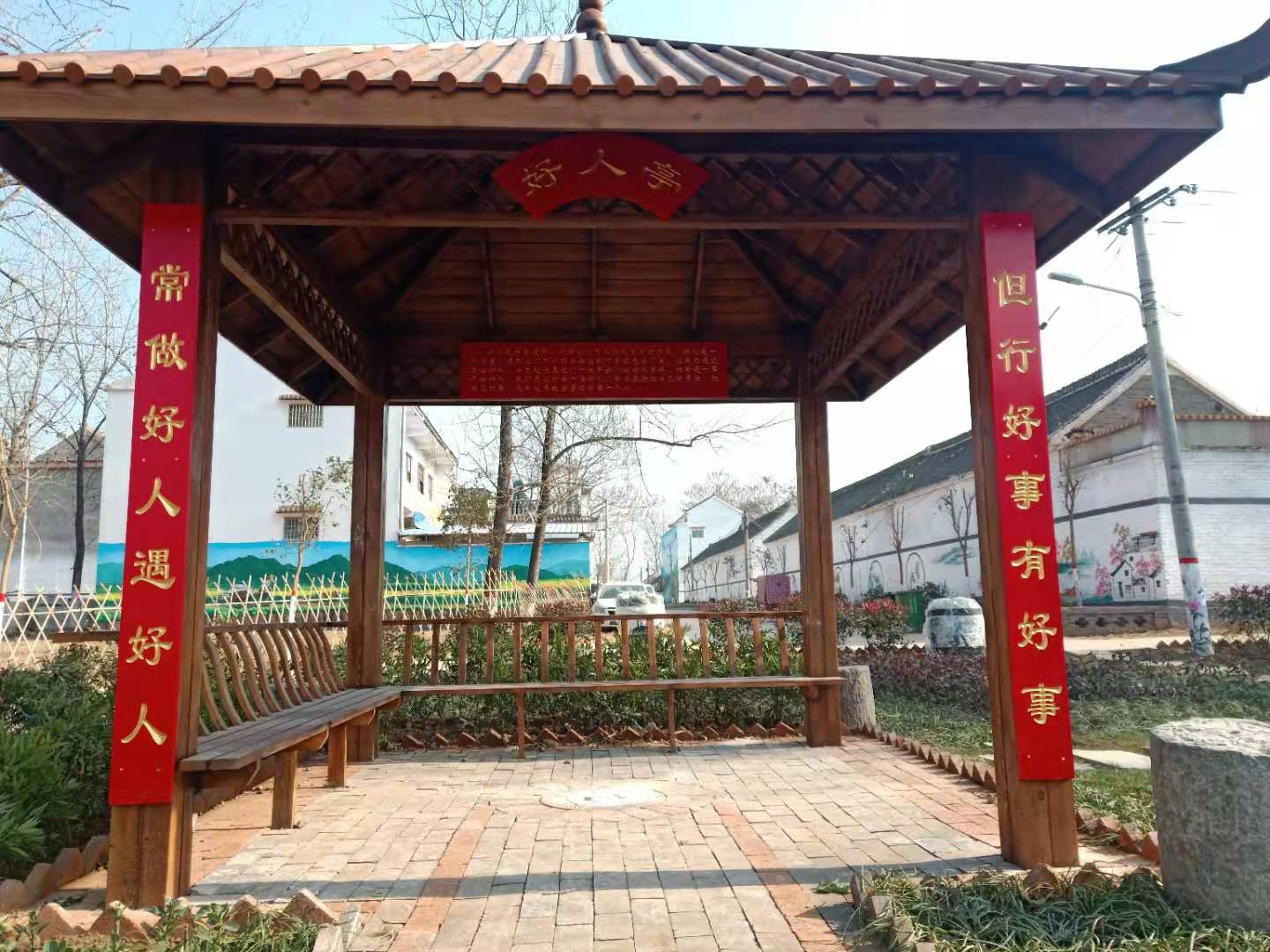 鄉(xiāng)賢帶動,眾籌共建美麗家園 村民聯(lián)誼會推選出會長1名,副會長3名,理事13名,從500多戶村民中選出好鄉(xiāng)賢32名,制作鄉(xiāng)賢榜懸掛到村鄉(xiāng)賢館。建立鄉(xiāng)賢聯(lián)誼群,動員村100多名創(chuàng)業(yè)、經(jīng)商、從政的成功人士,捐款捐物支持家鄉(xiāng)創(chuàng)建行動。建成了占地1000多平方米的紅色文化園、美麗鄉(xiāng)村文化墻2000多平方米、花壇3000多平方米,種植綠化樹3000多棵。崔古同村朱子賢、崔成允、池成乾等鄉(xiāng)賢組成指導(dǎo)組,進村入戶指導(dǎo)美麗庭院創(chuàng)建活動,開展房前屋后綠化美化,種植花草油菜林果。 鄉(xiāng)賢朱立志捐助臉盆500個、垃圾桶500個,為達到“五美庭院”標(biāo)準的農(nóng)戶發(fā)放獎品。