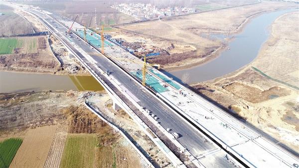 周口北環(huán)新建工程項(xiàng)目全線14.445km,其控制性工程為賈魯河大橋,全長904.22m。目前,賈魯河大橋左半幅橋油面已鋪設(shè)完畢,右半幅橋油面正在緊張施工,預(yù)計(jì)本月底完工。
