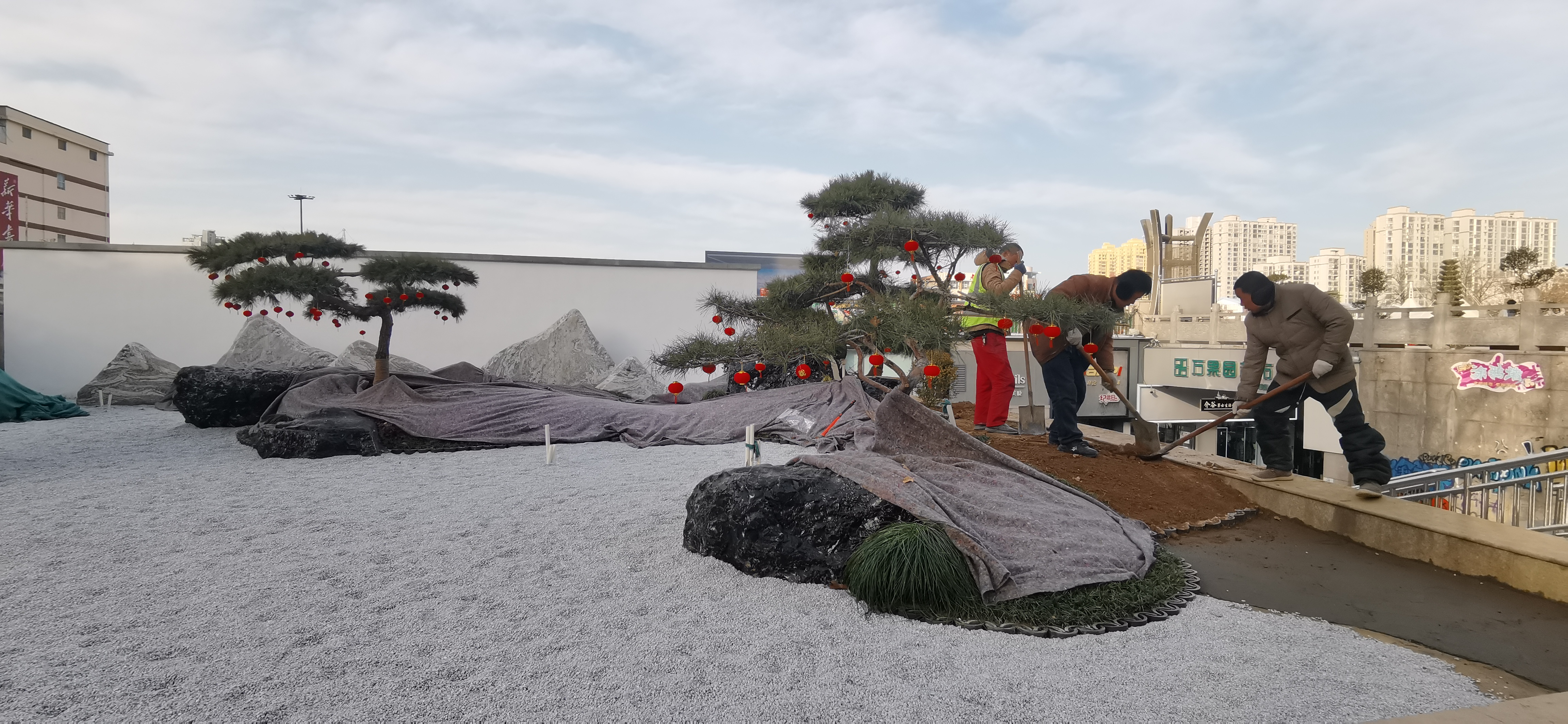 1月9日,工人在中心城區(qū)五一文化廣場綠化提升改造現(xiàn)場緊張工作。記者在廣場南側(cè)看到,東西兩端的圍擋己拆除,小而精的精品綠化工程顯現(xiàn)。兩處綠化景觀最后面是一個(gè)景墻,景墻再往前是一片錯(cuò)落有致的景石,給人一種峰巒疊嶂的感覺,再往前是由造型各異的迎客松、草坪、綠色植物等。②18