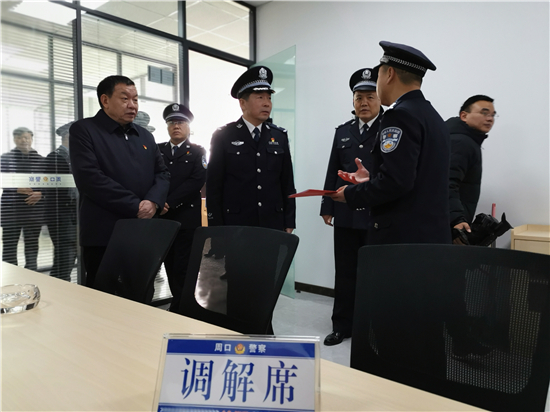 揭牌儀式后,參加儀式的全體人員實(shí)地參觀了華耀城派出所軟硬件設(shè)施等。據(jù)了解,該派出所學(xué)習(xí)借鑒一線先進(jìn)城市公安派出所營(yíng)房建設(shè),具備群眾接待區(qū)、非警務(wù)警情分流區(qū)、民警工作區(qū),分區(qū)合理,同時(shí)派出所視頻指揮室更是具備了警務(wù)可視化、和警務(wù)搜索查找功能,以科技服務(wù)破案、服務(wù)民生。派出所的成立,對(duì)進(jìn)一步提升轄區(qū)打防管控水平、營(yíng)造和諧穩(wěn)定的營(yíng)商環(huán)境必將起到積極的推動(dòng)作用。作為華耀城派出所首任所長(zhǎng)邵海濤表示,全所上下將始終堅(jiān)持“不忘初心、牢記使命”,大力弘揚(yáng)新時(shí)代周口公安精神,忠誠(chéng)履職、忠于職守,以最高標(biāo)準(zhǔn)、最佳狀態(tài),為轄區(qū)群眾保駕護(hù)航。