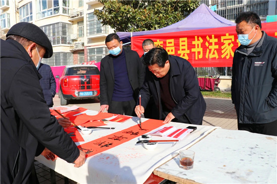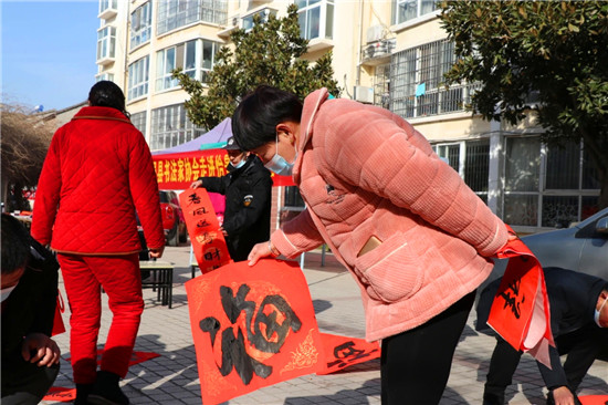 為增添節(jié)日氣氛,開啟喜迎新春的序幕,1月30日上午,鹿邑縣書法家協(xié)會(huì)組織書法家走進(jìn)谷陽(yáng)辦事處怡景花園小區(qū),開展為小區(qū)居民送福、送春聯(lián)義寫活動(dòng)。
