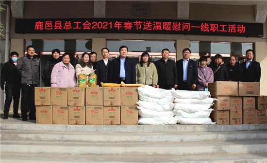 2月1日, 鹿邑縣總工會(huì)組織開(kāi)展“冬送溫暖”慰問(wèn)活動(dòng)??h人大常委會(huì)副主任、縣總工會(huì)主席王新民,縣總工會(huì)黨組書(shū)記、常務(wù)副主席武超參加活動(dòng),全體班子成員陪同慰問(wèn)。