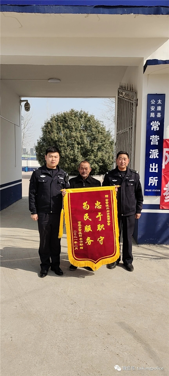 “謝謝民警同志,要不是你們的幫助,我這一年的打工所得就‘泡湯’啦!”2月2日12時(shí)許,太康縣一名老人來到該縣常營(yíng)派出所,把一面寫有“忠于職守為民服務(wù)”的錦旗送到民警許振雨手中。