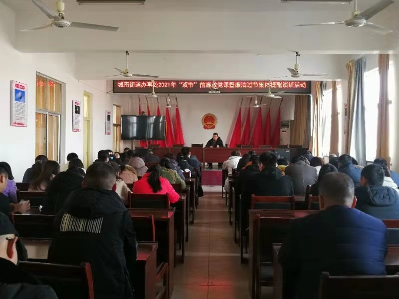 在春節(jié)、元宵節(jié)即將來(lái)臨之際,川匯區(qū)城南街道辦事處開(kāi)展2021年“雙節(jié)”前廉政黨課暨廉潔過(guò)節(jié)集體談話活動(dòng),要求黨員干部增強(qiáng)廉潔自律意識(shí)、筑牢思想防線,確保過(guò)一個(gè)風(fēng)清氣正的“雙節(jié)”。