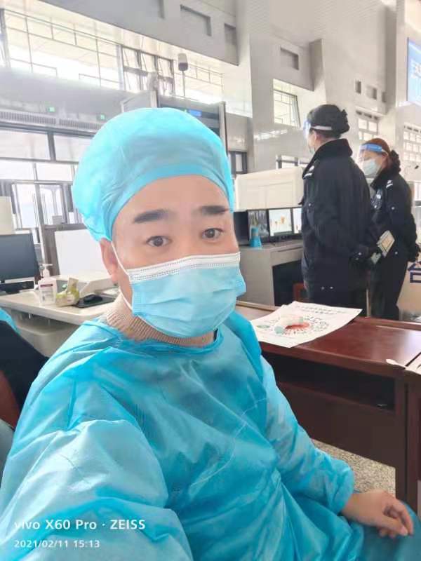 在執(zhí)勤現(xiàn)場(chǎng),當(dāng)記者問(wèn)及除夕夜在這里執(zhí)勤有啥想法沒(méi)?一旁的周文旭搶答說(shuō):“疫情防控是件大事,舍小家顧大家一直以來(lái)就是我們醫(yī)院的辦院宗旨和服務(wù)理念”“今天值班一夜,明天大不了睡一天,也要把工作干好,在崗一分鐘,責(zé)任60秒”王書(shū)浩說(shuō)。