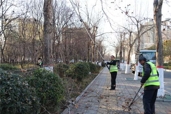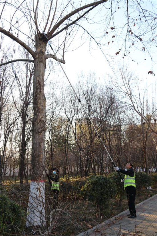 2月21日,城鄉(xiāng)一體化示范區(qū)城管局幾名市政管理人員在修剪周口大道兩旁的行道樹。據(jù)了解,通過一年的生長,行道樹衍生了許多無用枝條,如果對這些無用枝條不進行修剪,勢必影響今年的長勢。目前,道路兩邊的行道樹開始發(fā)芽,正是一年當(dāng)中修剪的有利時機。城鄉(xiāng)一體化示范區(qū)城管局每天出動三班技術(shù)人員,對轄區(qū)內(nèi)的行道樹進行修剪。