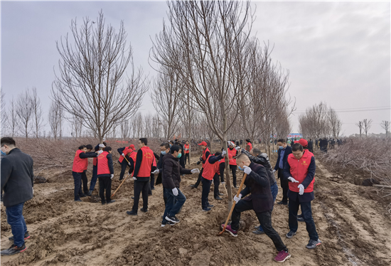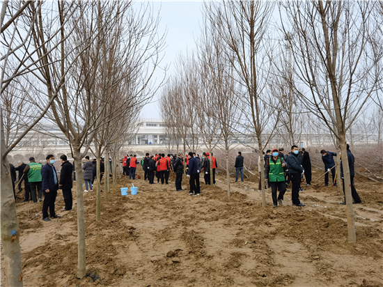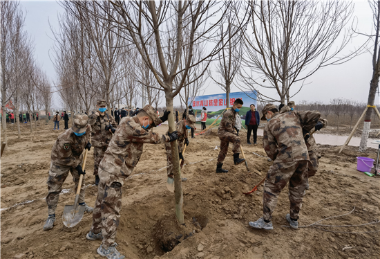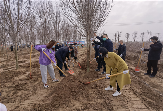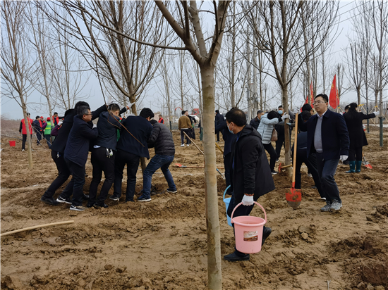 3月12日是全國第43個(gè)植樹節(jié),我市社會(huì)各界群眾來到高鐵片區(qū)義務(wù)植樹基地開展義務(wù)植樹活動(dòng),為森林周口建設(shè)增綠添彩。栽下棵棵樹苗,留下一片新綠,大家一起扶苗、培土、圍堰、澆灌,現(xiàn)場呈現(xiàn)一派熱火朝天的繁忙景象。②7