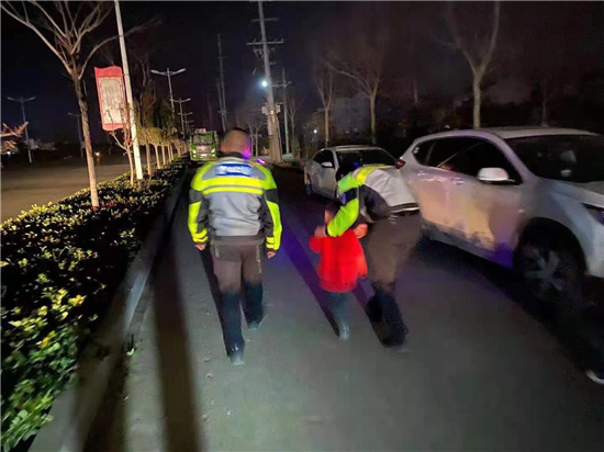 鄲城:夜班交警護(hù)送迷路小孩回家