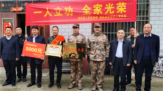 一人立功,全家光榮。3月19日上午,鹿邑縣試量鎮(zhèn)后楊樓行政村鑼鼓喧天,熱鬧非凡,鹿邑縣人武部、縣退役軍人事務(wù)局及試量鎮(zhèn)相關(guān)負(fù)責(zé)人一行,將立功喜報(bào)送到了二等功臣張國富的家人手中。