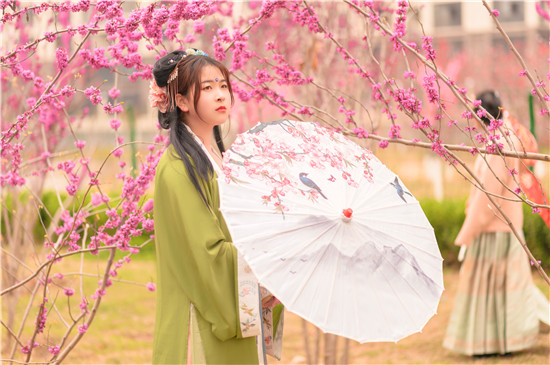 活動(dòng)期間,漢服愛好者身著各種款式的漢服,長(zhǎng)衫、褙子、曲裾、襦裙,宛若一幅歷史長(zhǎng)卷華麗鋪開,再一次展現(xiàn)出泱泱中華的傳統(tǒng)文化和歷史底蘊(yùn)。開始時(shí),他們?cè)谌嗣窆珗@大門口跳起了中國(guó)風(fēng)舞蹈,隨后又三五成群地在公園內(nèi)游玩,吸引了不少市民圍觀。